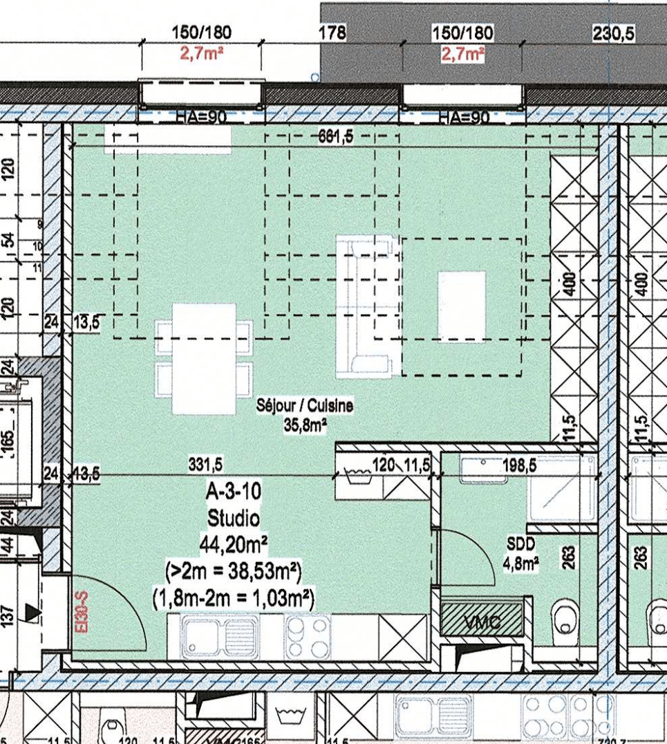• &44.20 m² de surface habitable